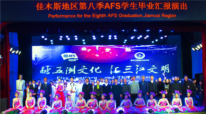 12月12日下午,我校會(huì)議中心熱鬧非凡,載歌載舞,“融五洲文化 匯三江文明”佳木斯地區(qū)第八季AFS留學(xué)生畢業(yè)匯報(bào)演出在這里隆重舉行。佳木斯市副市長郭雪梅、佳木斯市教育局局長王龍升受邀來我校參加了此項(xiàng)活動(dòng)。此外,佳木斯市第二中學(xué)、第八中學(xué)、第十一中學(xué)、湯原縣高級(jí)中學(xué)、樺南縣培黎學(xué)校及我校共六所學(xué)校的領(lǐng)導(dǎo)及AFS留學(xué)生參加了此次匯報(bào)演出。此次演出由我校涉外護(hù)理專業(yè)學(xué)生主持。 會(huì)上,我校校長羅基保致辭。他代表我校全體師生向蒞臨我校參加AFS留學(xué)生匯報(bào)演出的各位領(lǐng)導(dǎo)、來賓表示熱烈地歡迎和衷心地感謝!對(duì)于留學(xué)生,他深情講到各國留學(xué)生懷著對(duì)中國傳統(tǒng)文化的向往,播撒友誼的美好心愿,不遠(yuǎn)萬里來到中國,來到黑龍江省佳木斯市,克服了語言、生活上的種種困難,經(jīng)過一年的文化交流活動(dòng),充實(shí)而富有意義的AFS經(jīng)歷必將讓同學(xué)們?cè)跉w國后成功地走向?qū)W業(yè)和職業(yè)的新高度。 佳木斯市教育局外事科科長于佳在會(huì)上介紹了我市AFS項(xiàng)目發(fā)展情況及獲獎(jiǎng)情況。他指出成績的取得是在佳木斯市市委和政府的領(lǐng)導(dǎo)下,得到市教育局的大力支持及眾多志愿者傾情付出的結(jié)果。他希望各學(xué)校取長補(bǔ)短,共同促進(jìn)佳木斯地區(qū)AFS項(xiàng)目發(fā)展,今后取得更好的成績。 佳木斯市教育局局長王龍升做了重要講話。他代表佳木斯市教育局對(duì)各接待家庭的無私奉獻(xiàn)表示感謝,并希望留學(xué)生們回國后能保持對(duì)中文的熱度,努力學(xué)習(xí),把好的文化傳統(tǒng)引進(jìn)到中國來,同時(shí)把中國的文化傳統(tǒng)介紹到世界各地。 伴隨著唯美祥和的開場舞蹈《多彩盛世》匯報(bào)演出正式拉開了帷幕。各校留學(xué)生的節(jié)目精彩紛呈,他們整齊的動(dòng)作,優(yōu)雅的姿態(tài)將現(xiàn)場觀眾帶入濃濃的氣氛中來。演出在我校AFS留學(xué)生帶來的結(jié)束曲《我相信》中圓滿結(jié)束。整場各校留學(xué)生們精彩的演出,感染了每個(gè)觀眾,場下掌聲連臺(tái),展示出留學(xué)生中文水平的同時(shí),也讓各位留學(xué)生了解了中國的藝術(shù)形式。我校留學(xué)生表示:“能夠代表黑林衛(wèi)和眾多留學(xué)生同臺(tái)演出,是迄今為止我經(jīng)歷的最有意義也是最難忘的一件事情,我感到非常自豪!” 我校始終秉持國際化教育教學(xué)理念,不斷學(xué)習(xí)先進(jìn)的國際化教育教學(xué)模式,致力于國際化特色辦學(xué)。學(xué)校長年聘請(qǐng)優(yōu)秀外籍教師,承接國際學(xué)生留學(xué)。憑借先進(jìn)的教育理念和雄厚的教學(xué)實(shí)力,將一屆屆國際留學(xué)生培養(yǎng)成才,為推進(jìn)學(xué)校走向世界注入了強(qiáng)大動(dòng)力!