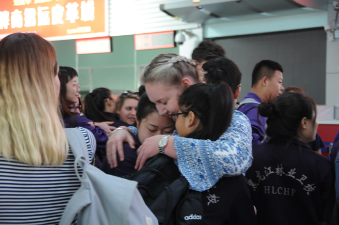 雖然,大家只相處了一周的時(shí)間,但兩校師生的感情是深厚的。兩校師生依依惜別,熱情擁抱,合影留念,互贈(zèng)禮物。