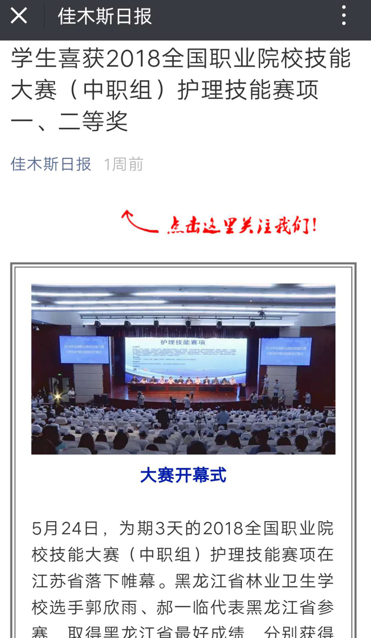 5月24日,為期3天的2018全國職業(yè)院校技能大賽(中職組)護(hù)理技能賽項(xiàng)在江蘇省落下帷幕。黑龍江省林業(yè)衛(wèi)生學(xué)校選手郭欣雨、郝一臨代表黑龍江省參賽,取得黑龍江省最好成績,分別獲得大賽一等獎和二等獎。這是黑龍江省林業(yè)衛(wèi)生學(xué)校繼2011年田雪同學(xué)、2013年徐奧梅同學(xué)、2014年鐵文雅同學(xué)、2017年崔瑩瑩同學(xué)獲得該大賽一等獎后,第五次摘得此項(xiàng)大賽桂冠。