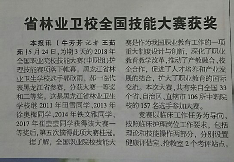 【三江晚報(bào)】省林業(yè)衛(wèi)校全國(guó)技能大賽獲獎(jiǎng)