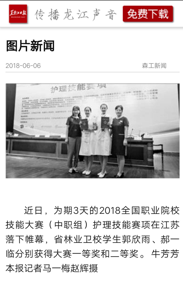 近日,為期3天的2018全國(guó)職業(yè)院校技能大賽(中職組)護(hù)理技能賽項(xiàng)在江蘇落下帷幕,省林業(yè)衛(wèi)校學(xué)生郭欣雨、郝一臨分別獲得大賽一等獎(jiǎng)和二等獎(jiǎng)。 牛芳芳本報(bào)記者馬一梅趙輝攝