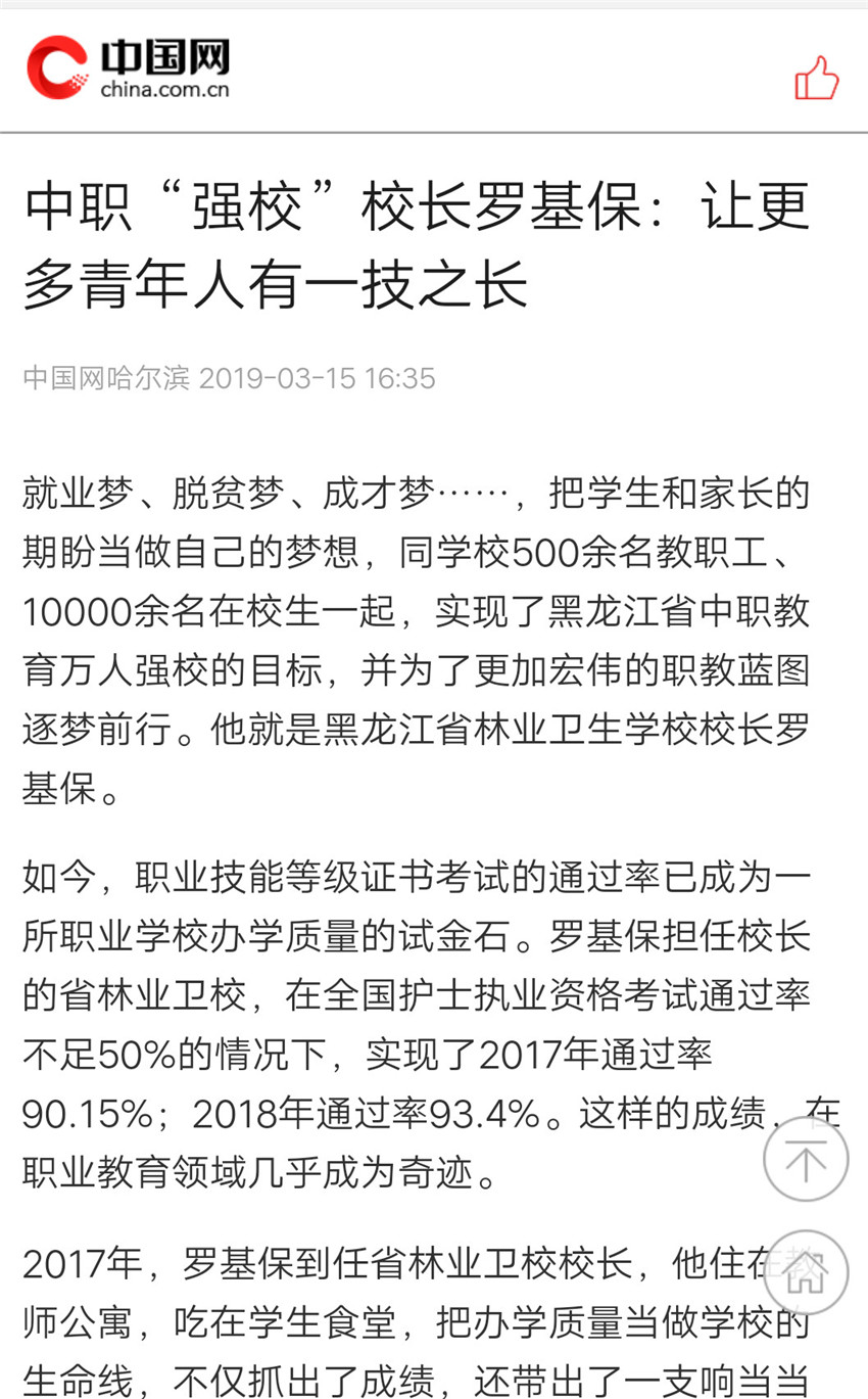 【中國網(wǎng)】中職強校校長羅基保:讓更多青年人有一技之長