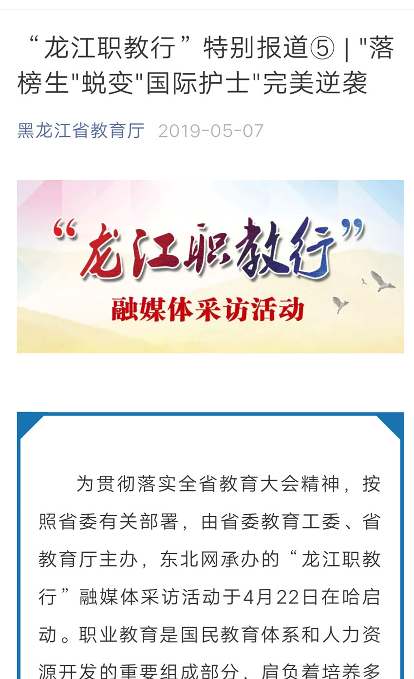 【黑龍江省教育廳】“落榜生”蛻變“國(guó)際護(hù)士”完美逆襲