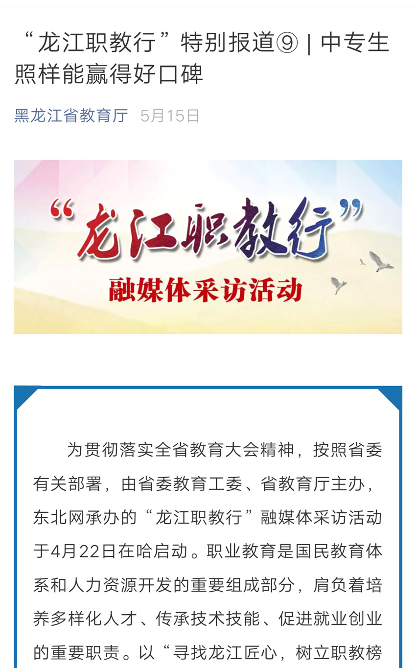 【黑龍江省教育廳】中專生照樣能贏得好口碑