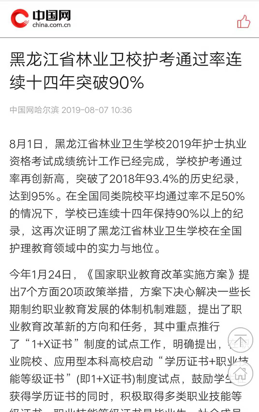 【中國網(wǎng)】省林業(yè)衛(wèi)校護考通過率連續(xù)十四年突破90%