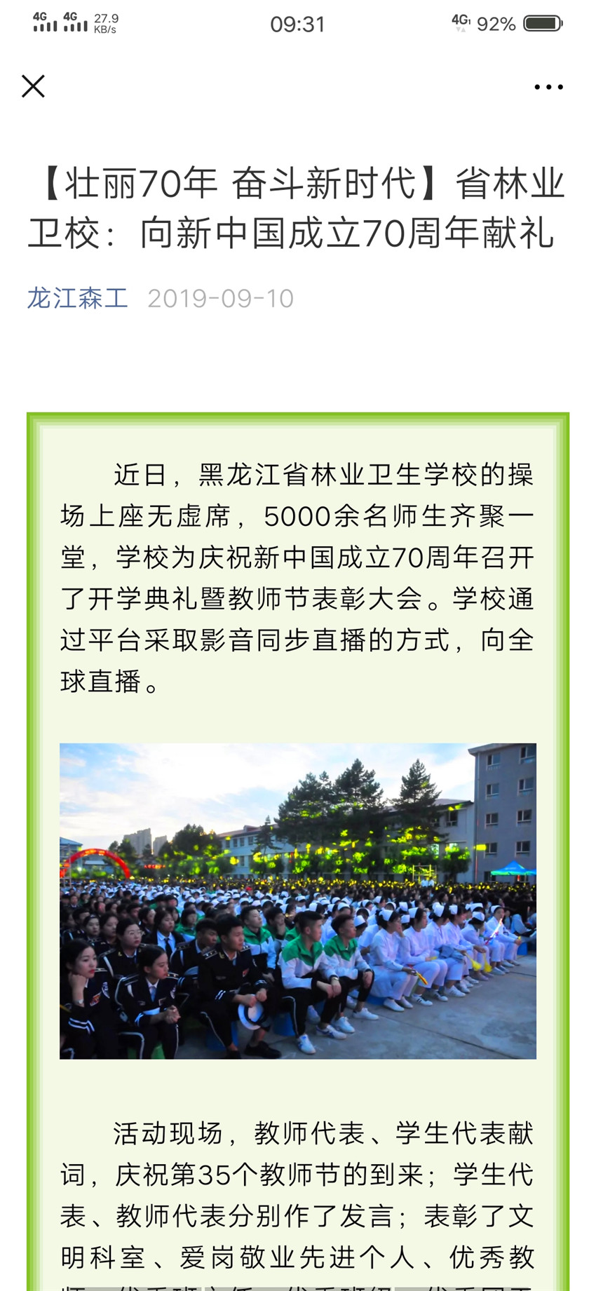 【龍江森工】壯麗70年 奮斗新時(shí)代|省林業(yè)衛(wèi)校向新中國成立70周年獻(xiàn)禮