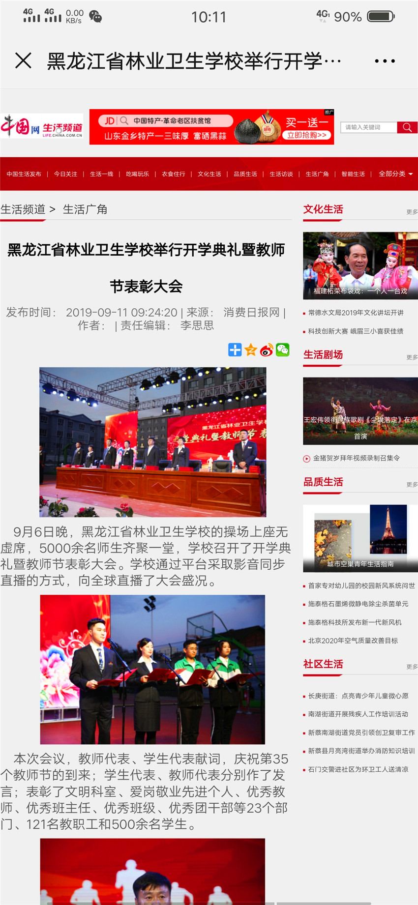【中國(guó)網(wǎng)】黑龍江省林業(yè)衛(wèi)生學(xué)校舉行開(kāi)學(xué)典禮暨教師節(jié)表彰大會(huì)