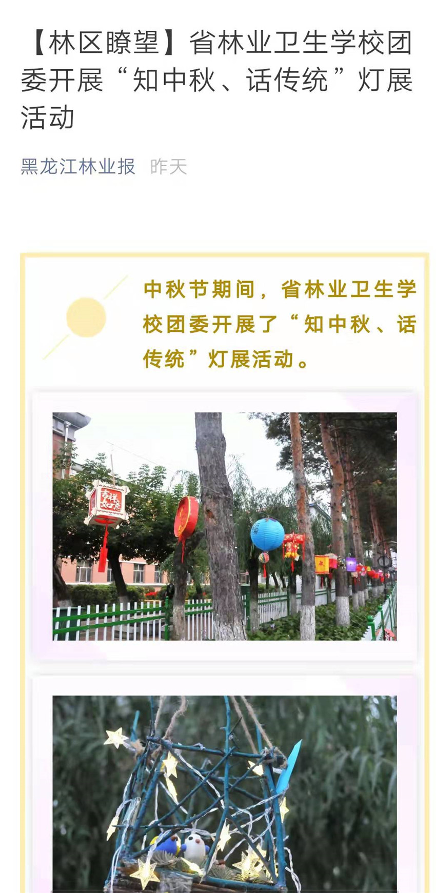 【黑龍江林業(yè)報】省林業(yè)衛(wèi)校團(tuán)委開展“知中秋 話傳統(tǒng)”燈展活動