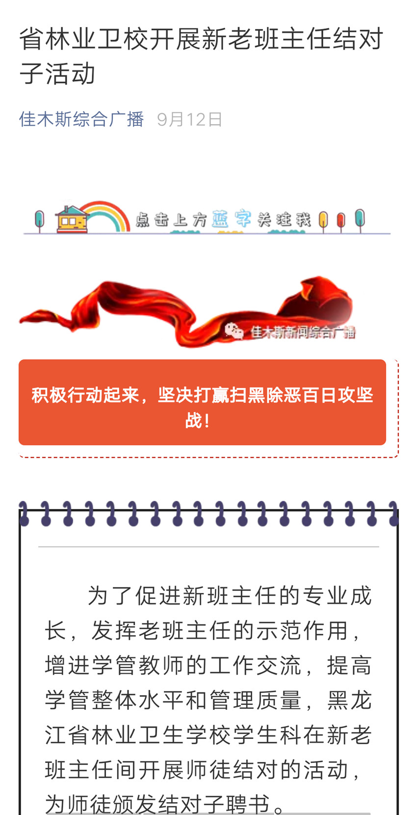 【佳木斯綜合廣播】省林業(yè)衛(wèi)校開展新老班主任結(jié)對子活動