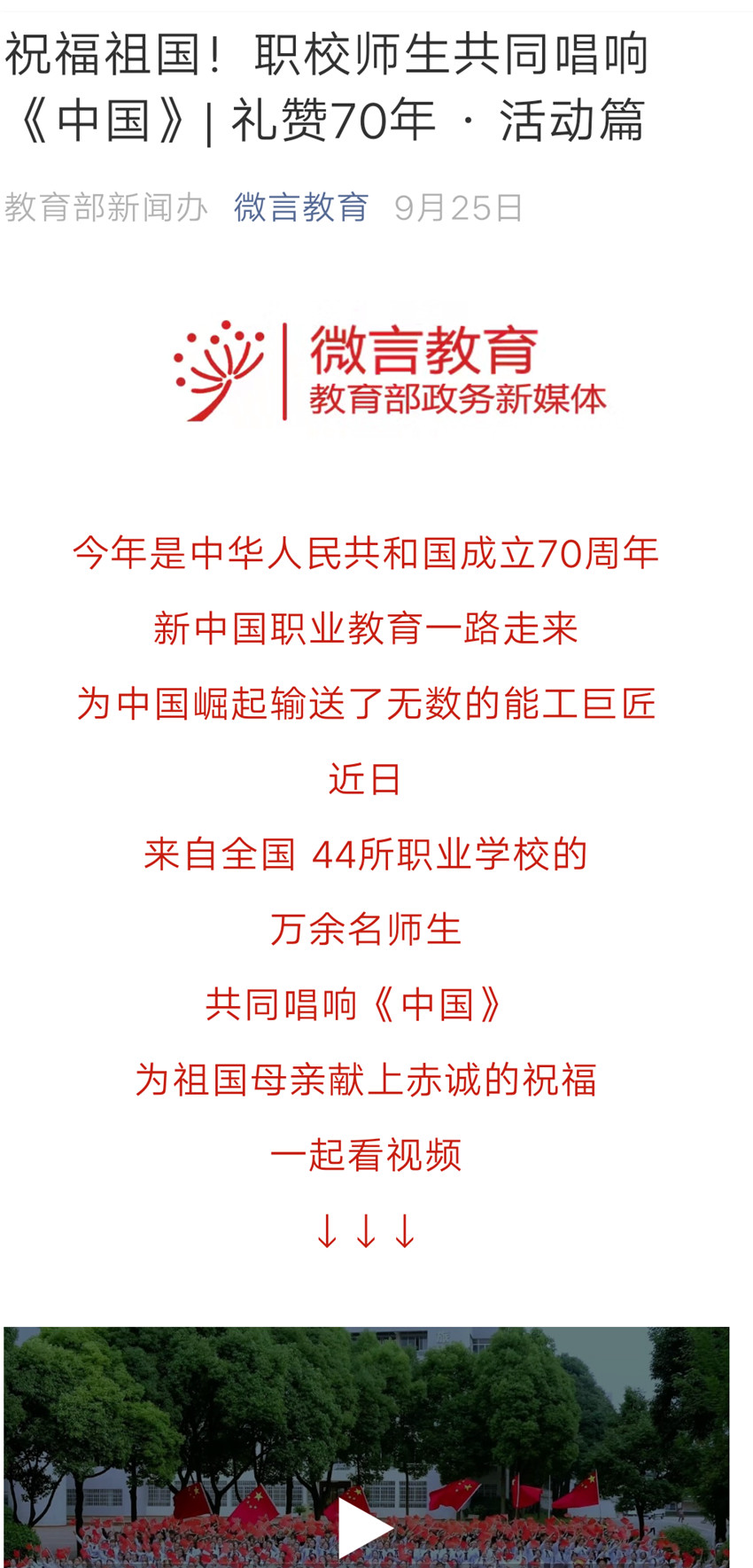 【教育部新聞辦】祝福祖國職教師生共同唱響《中國》