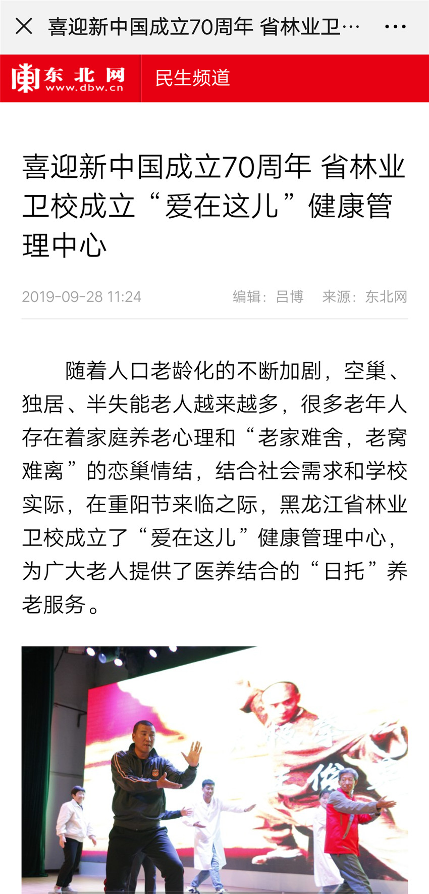 【東北網(wǎng)】喜迎新中國成立70周年省林業(yè)衛(wèi)校成立“愛在這兒”健康管理中心