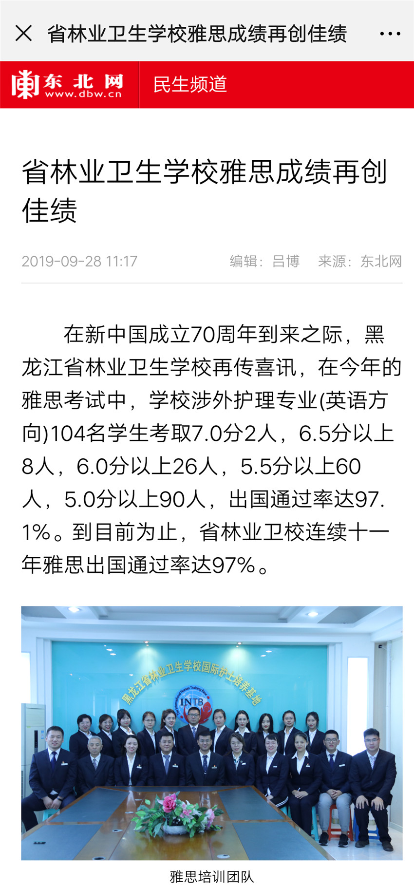 【東北網(wǎng)】省林業(yè)衛(wèi)校雅思成績(jī)?cè)賱?chuàng)佳績(jī)