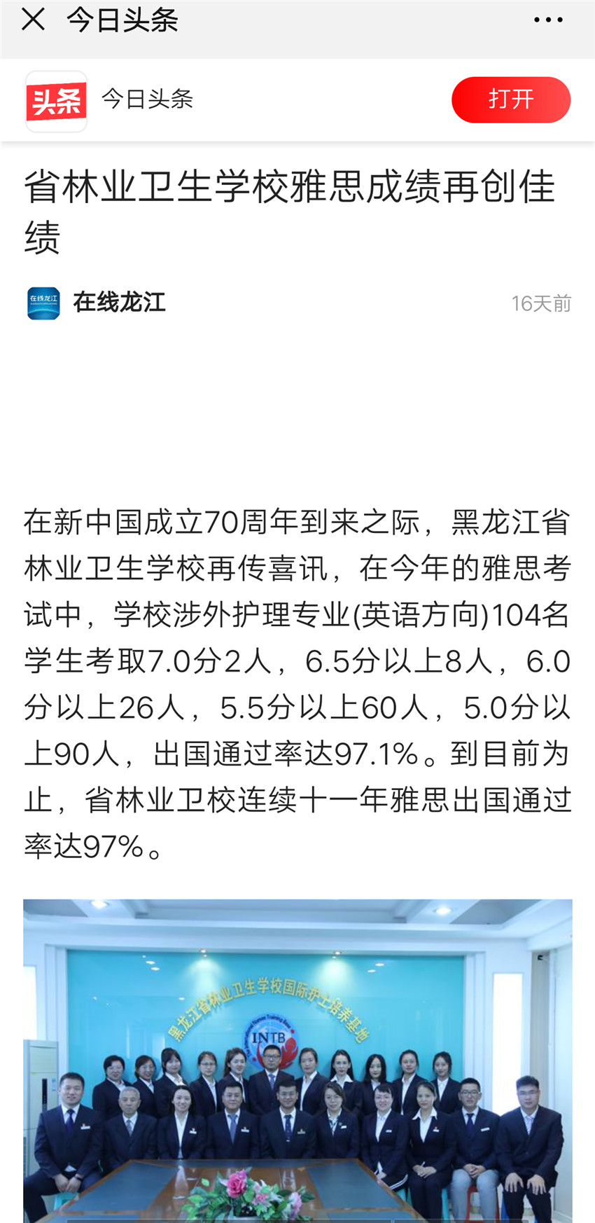 【今日頭條】省林業(yè)衛(wèi)校雅思成績(jī)?cè)賱?chuàng)佳績(jī)