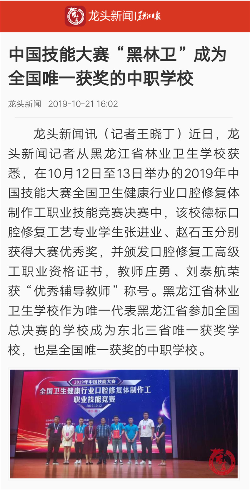 【龍頭新聞】中國技能大賽“黑林衛(wèi)”成為全國唯一獲獎(jiǎng)的 中職學(xué)校