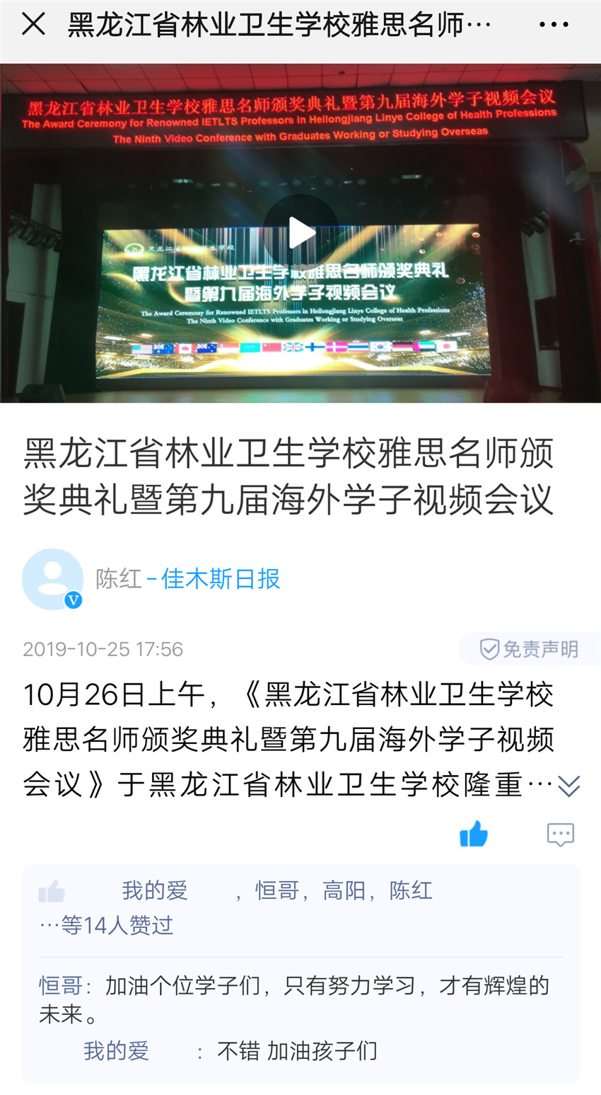 【新華社直播云】黑龍江省林業(yè)衛(wèi)生學(xué)校雅思名師頒獎典禮暨第九屆海外學(xué)子視頻會議