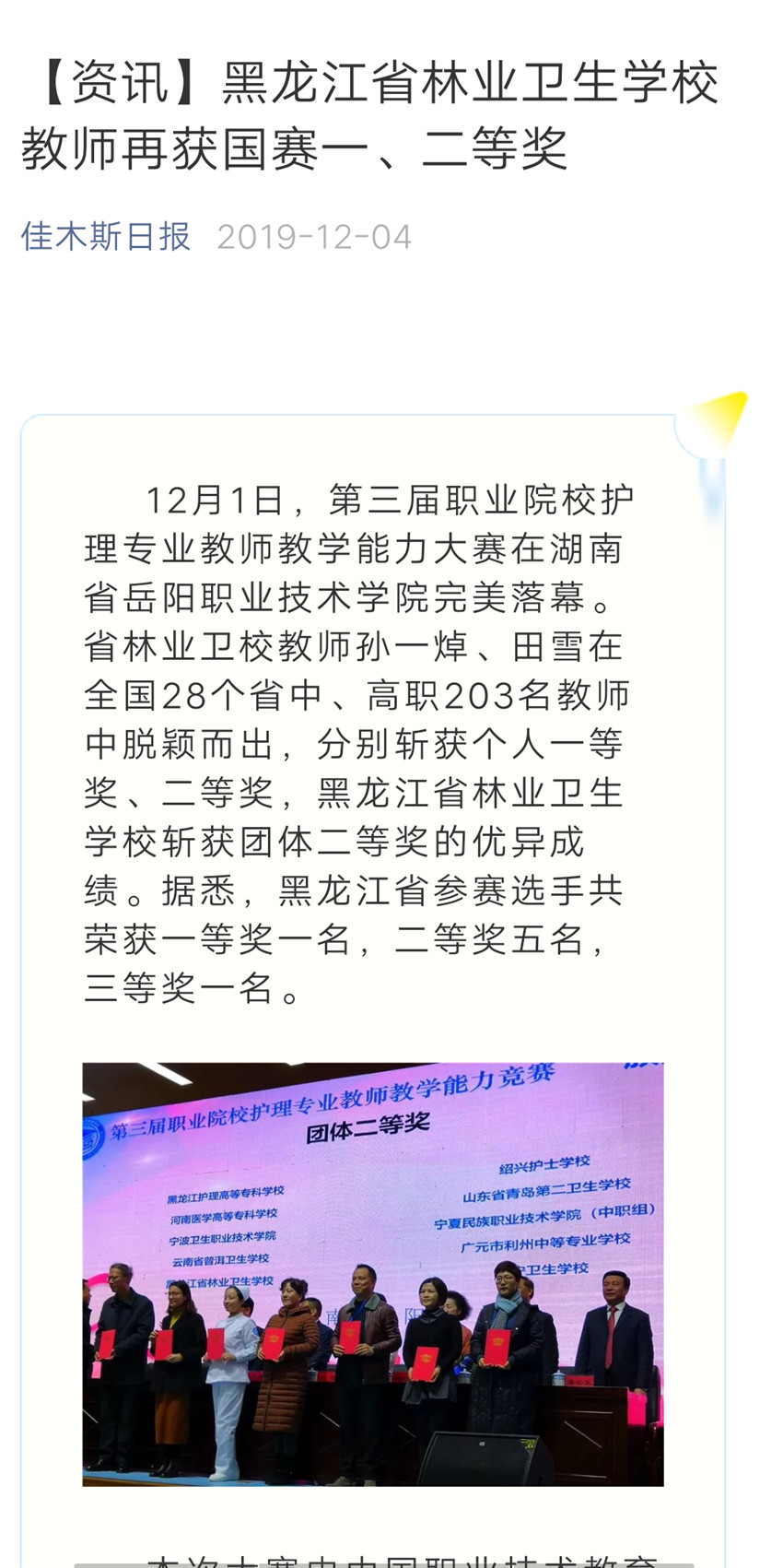 【佳木斯日報】黑龍江省林業(yè)衛(wèi)生學(xué)校教師再獲國賽一、二等獎
