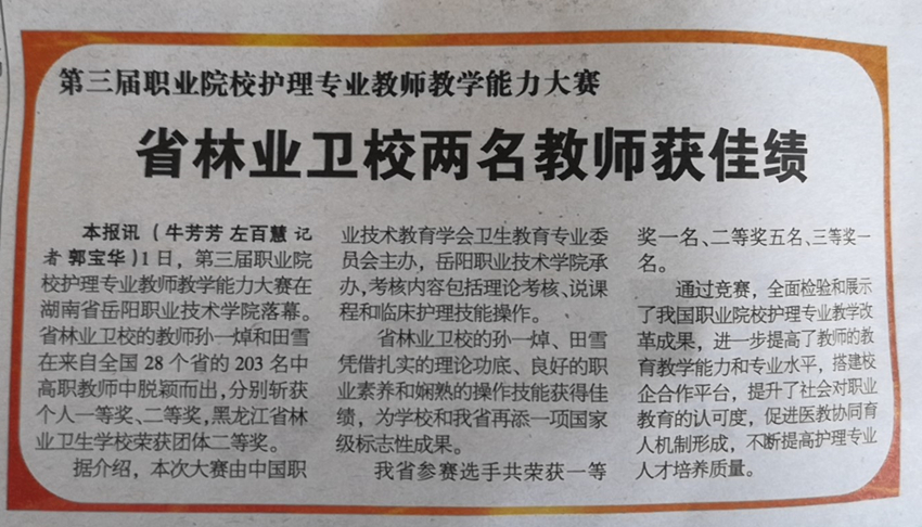 【三江晚報(bào)】第三屆職業(yè)院校護(hù)理專業(yè)教師教學(xué)能力大賽省林業(yè)衛(wèi)校兩名教師獲佳績(jī)