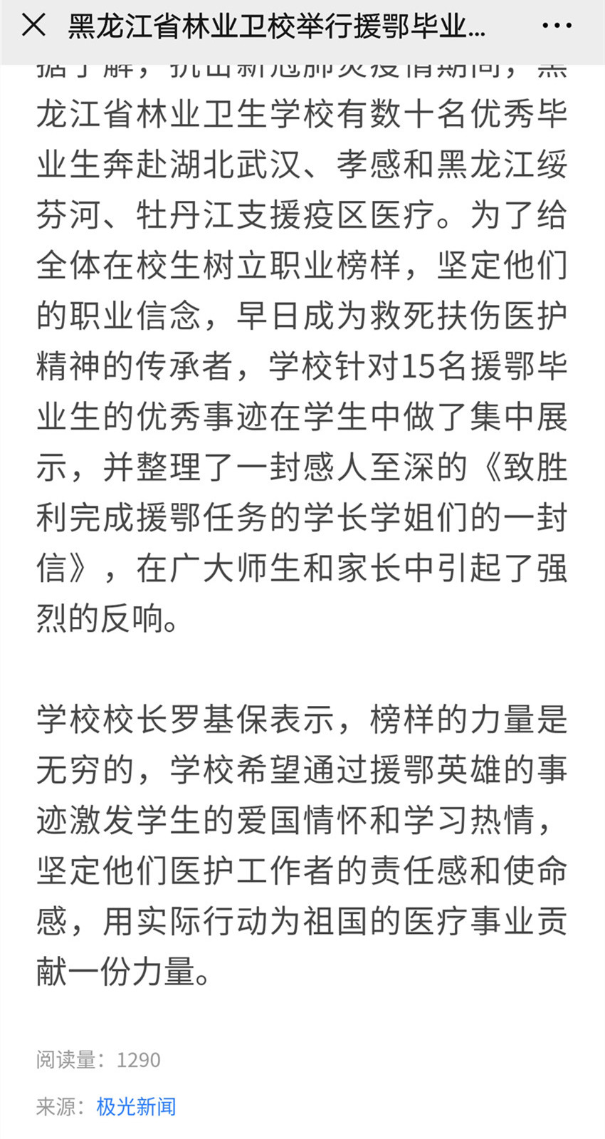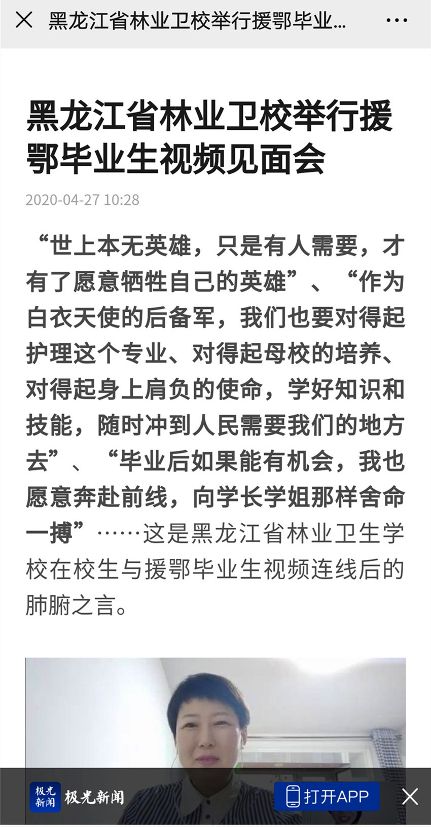 【極光新聞】黑龍江省林業(yè)衛(wèi)校舉行支援湖北畢業(yè)生視頻見(jiàn)面會(huì)