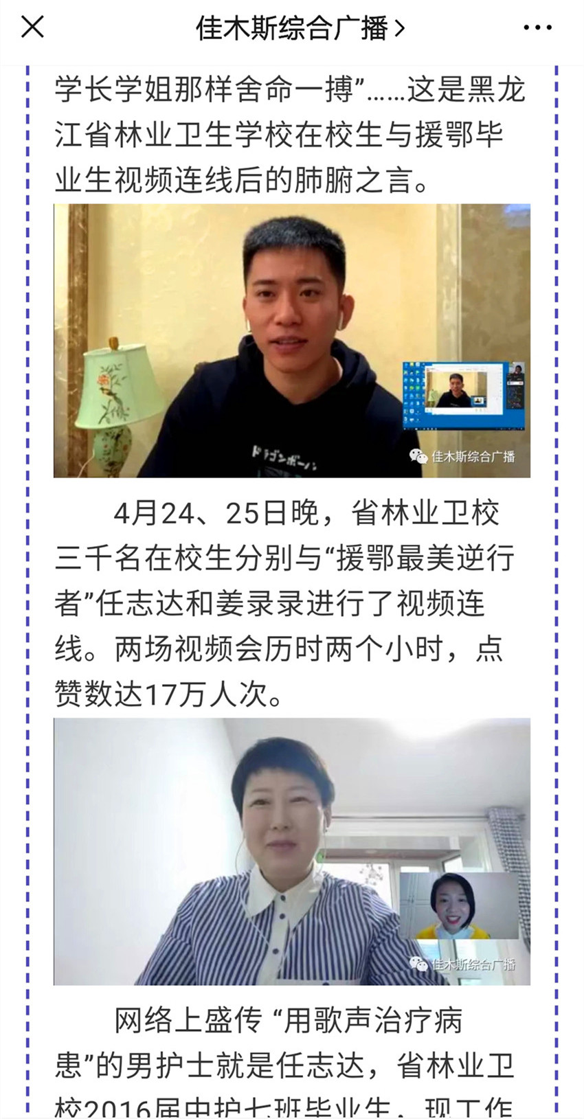 【佳木斯綜合廣播】省林業(yè)衛(wèi)校舉行援鄂畢業(yè)生視頻見(jiàn)面會(huì)
