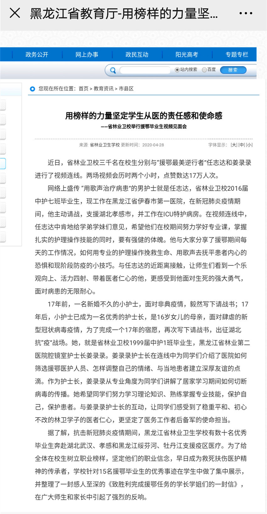 【黑龍江省教育廳】用榜樣的力量堅定學(xué)生從醫(yī)的責(zé)任感和使命感
