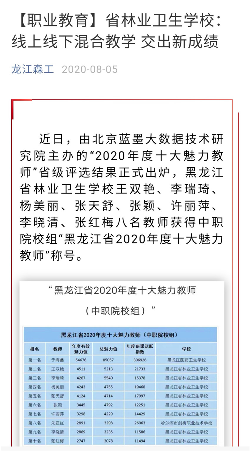 【龍江森工】省林業(yè)衛(wèi)生學校:線上線下混合教學 交出新成績 |