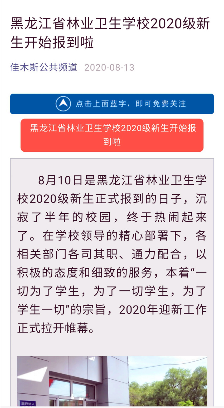 【佳木斯公共頻道】黑龍江省林業(yè)衛(wèi)生學(xué)校2020級(jí)新生開始報(bào)到啦 |