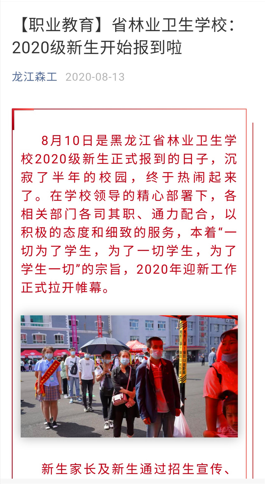 【龍江森工】省林業(yè)衛(wèi)生學(xué)校:2020級新生開始報到啦 |