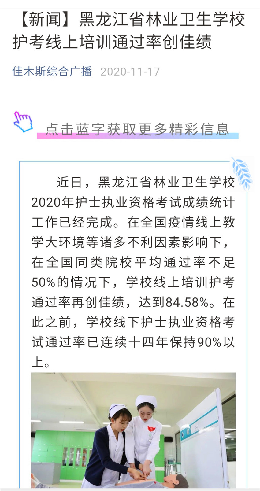 【佳木斯綜合廣播】【新聞】黑龍江省林業(yè)衛(wèi)生學(xué)校護(hù)考線上培訓(xùn)通過(guò)率創(chuàng)佳績(jī)