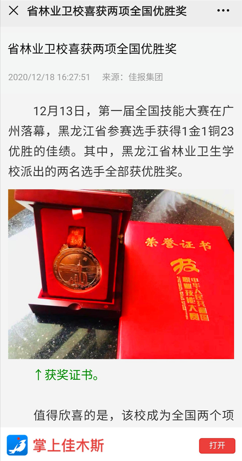 【佳報(bào)集團(tuán)】省林業(yè)衛(wèi)校喜獲兩項(xiàng)全國(guó)優(yōu)勝獎(jiǎng) |