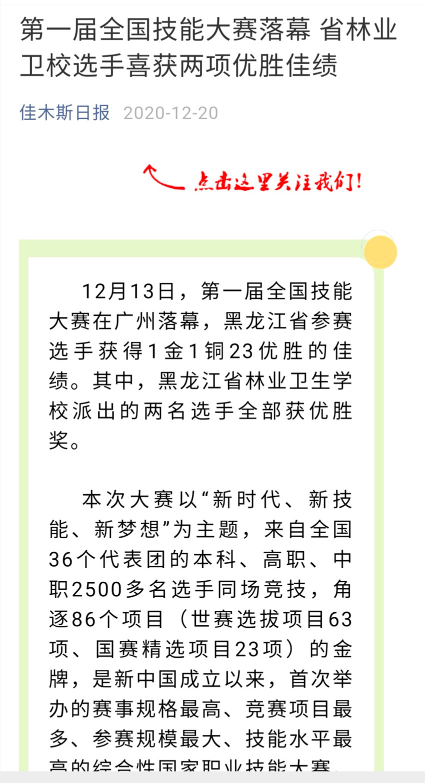 12月13日,第一屆全國(guó)技能大賽在廣州落幕,黑龍江省參賽選手獲得1金1銅23優(yōu)勝的佳績(jī)。其中,黑龍江省林業(yè)衛(wèi)生學(xué)校派出的兩名選手全部獲優(yōu)勝獎(jiǎng)。 本次大賽以“新時(shí)代、新技能、新夢(mèng)想”為主題,來(lái)自全國(guó)36個(gè)代表團(tuán)的本科、高職、中職2500多名選手同場(chǎng)競(jìng)技,角逐86個(gè)項(xiàng)目(世賽選拔項(xiàng)目63項(xiàng)、國(guó)賽精選項(xiàng)目23項(xiàng))的金牌,是新中國(guó)成立以來(lái),首次舉辦的賽事規(guī)格最高、競(jìng)賽項(xiàng)目最多、參賽規(guī)模最大、技能水平最高的綜合性國(guó)家職業(yè)技能大賽。此次大賽,黑龍江省派出70名選手、55名裁判參加61個(gè)項(xiàng)目的角逐和裁判。 黑龍江省林業(yè)衛(wèi)生學(xué)校兩名中職選手與全國(guó)高水平的高職院校和本科院校選手同臺(tái)競(jìng)技,經(jīng)過(guò)3個(gè)比賽日的不懈努力,李欣格喜獲健康和社會(huì)照護(hù)(世賽選拔)項(xiàng)目?jī)?yōu)勝獎(jiǎng),并入選明年在上海舉行的第46屆世界技能大賽健康和社會(huì)照護(hù)項(xiàng)目國(guó)家集訓(xùn)隊(duì);梁思卿喜獲健康照護(hù)(國(guó)賽精選)項(xiàng)目?jī)?yōu)勝獎(jiǎng)。黑龍江省林業(yè)衛(wèi)生學(xué)校成為全國(guó)兩個(gè)項(xiàng)目唯一獲獎(jiǎng)的中職學(xué)校。 據(jù)了解,健康和社會(huì)照護(hù)(世賽選拔)項(xiàng)目為單人技能競(jìng)賽項(xiàng)目,項(xiàng)目的從業(yè)者是在不同的場(chǎng)合,包括醫(yī)院、長(zhǎng)期照護(hù)中心、日間照護(hù)中心和家庭,直接為需要的個(gè)人和家庭提供服務(wù),滿足他們?cè)诮】岛蜕鐣?huì)方面的整體需求,從而能夠使他們身心健康和愉悅地生活。此項(xiàng)目要求比賽選手與患者全程使用英語(yǔ)交流。健康照護(hù)(國(guó)賽精選)項(xiàng)目是指健康照護(hù)參賽人員結(jié)合醫(yī)學(xué)基礎(chǔ)知識(shí)與技能在居家、社區(qū)、護(hù)理院機(jī)構(gòu)等場(chǎng)合,直接為照護(hù)對(duì)象(老年人)提供生活照護(hù)、基礎(chǔ)照護(hù)、康復(fù)照護(hù)、感染防護(hù)等相關(guān)專(zhuān)業(yè)技能服務(wù)的競(jìng)賽項(xiàng)目。 通過(guò)本次大賽,黑龍江省林業(yè)衛(wèi)生學(xué)?偨Y(jié)經(jīng)驗(yàn)、彌補(bǔ)不足,對(duì)了解職業(yè)技能發(fā)展的前沿技術(shù),打造具有國(guó)際水平的高技能人才隊(duì)伍具有積極促進(jìn)作用。結(jié)合大賽,學(xué)校推動(dòng)以賽促學(xué)、以賽促訓(xùn)、以賽促建,對(duì)接世界技能大賽,為參加第二屆全國(guó)技能大賽做好準(zhǔn)備。