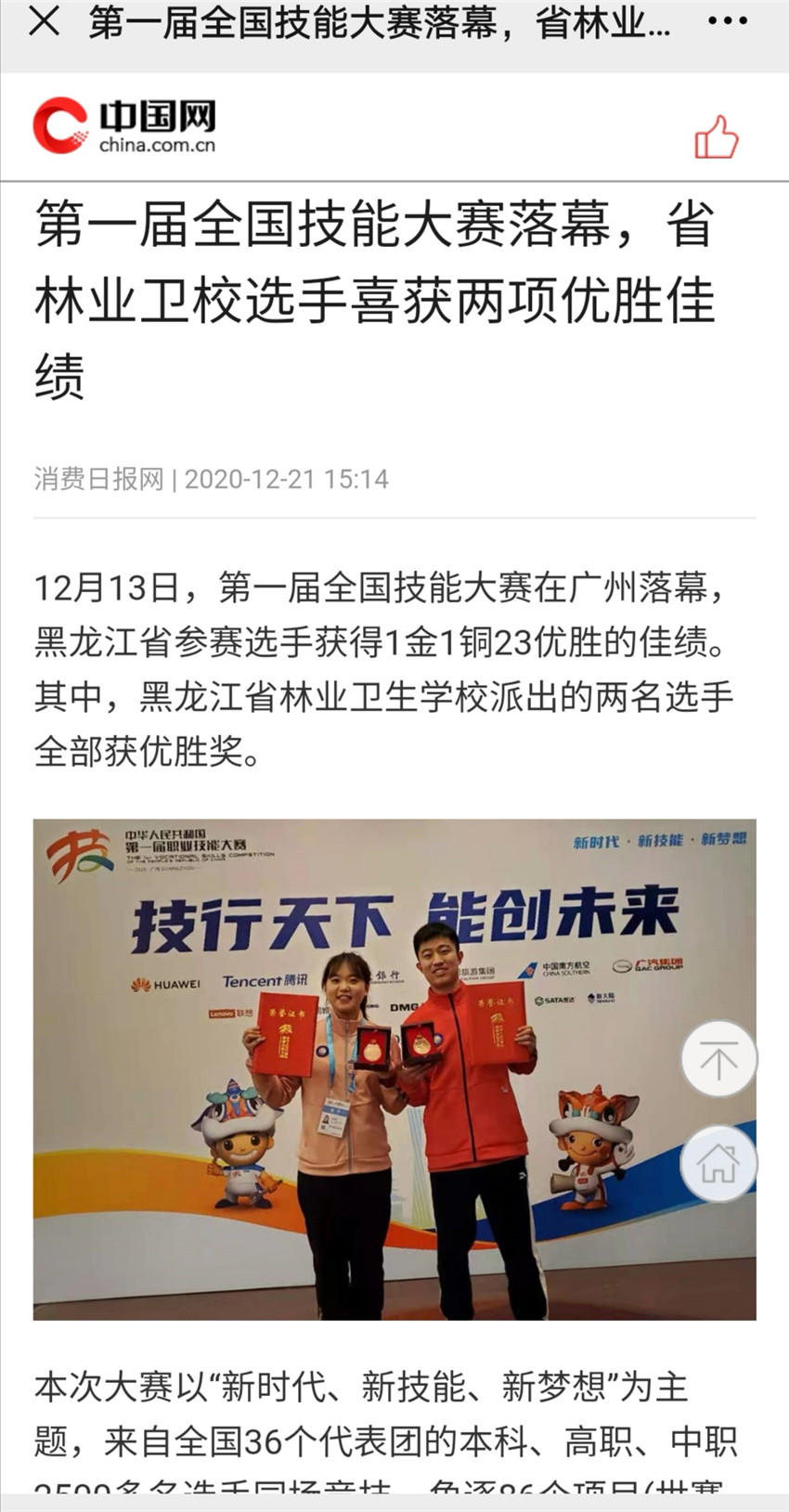【中國(guó)網(wǎng)】第一屆全國(guó)技能大賽落幕,省林業(yè)衛(wèi)校選手喜獲兩項(xiàng)優(yōu)勝佳績(jī) |