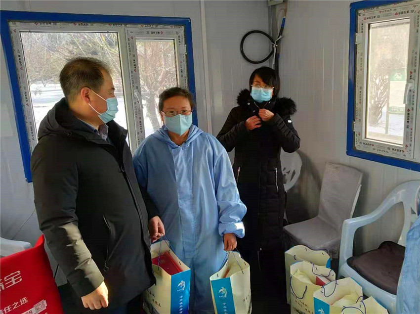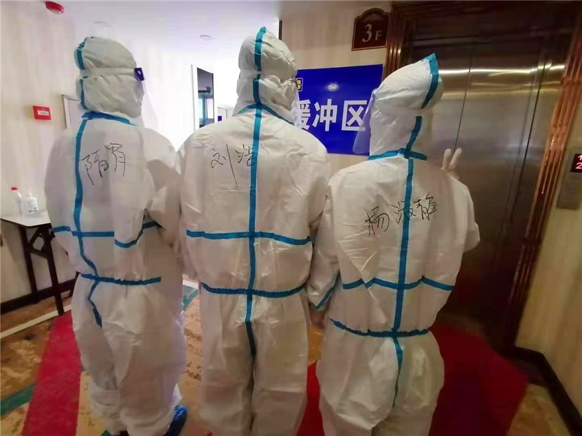 楊淑靜、隋霄、劉浩在集中隔離點(diǎn)工作
