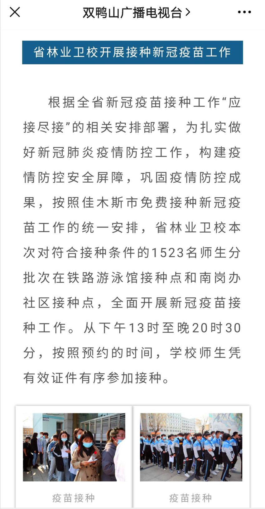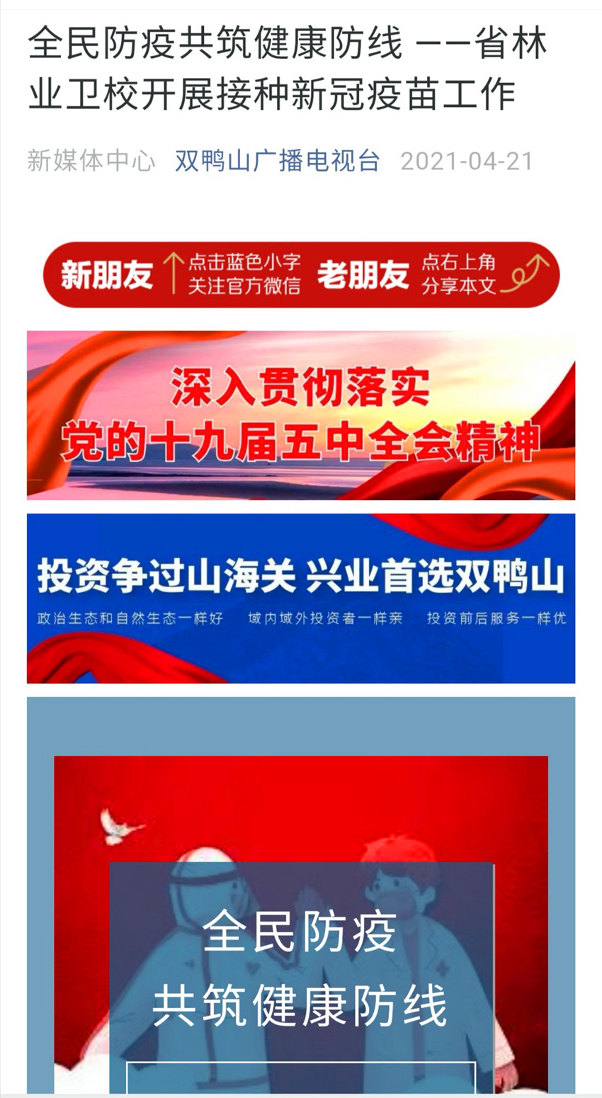 【雙鴨山廣播電視臺】全民防疫共筑健康防線 ——省林業(yè)衛(wèi)校開展接種新冠疫苗工作 |