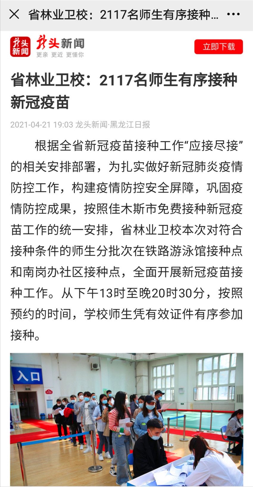 【龍頭新聞】省林業(yè)衛(wèi)校:2117名師生有序接種新冠疫苗 |