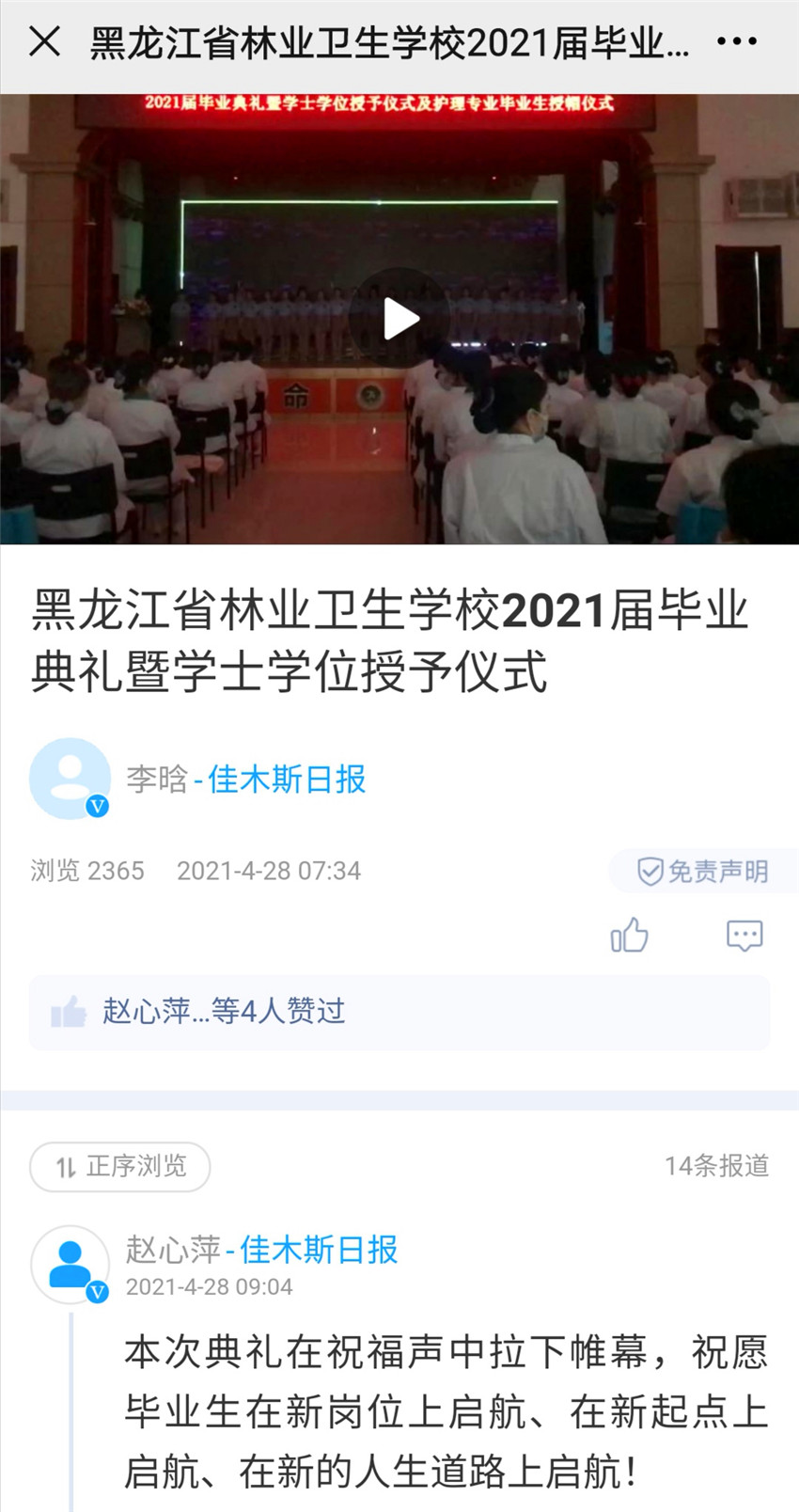 【佳木斯日?qǐng)?bào)】黑龍江省林業(yè)衛(wèi)生學(xué)校2021屆畢業(yè)典禮暨學(xué)士學(xué)位授予儀式 |