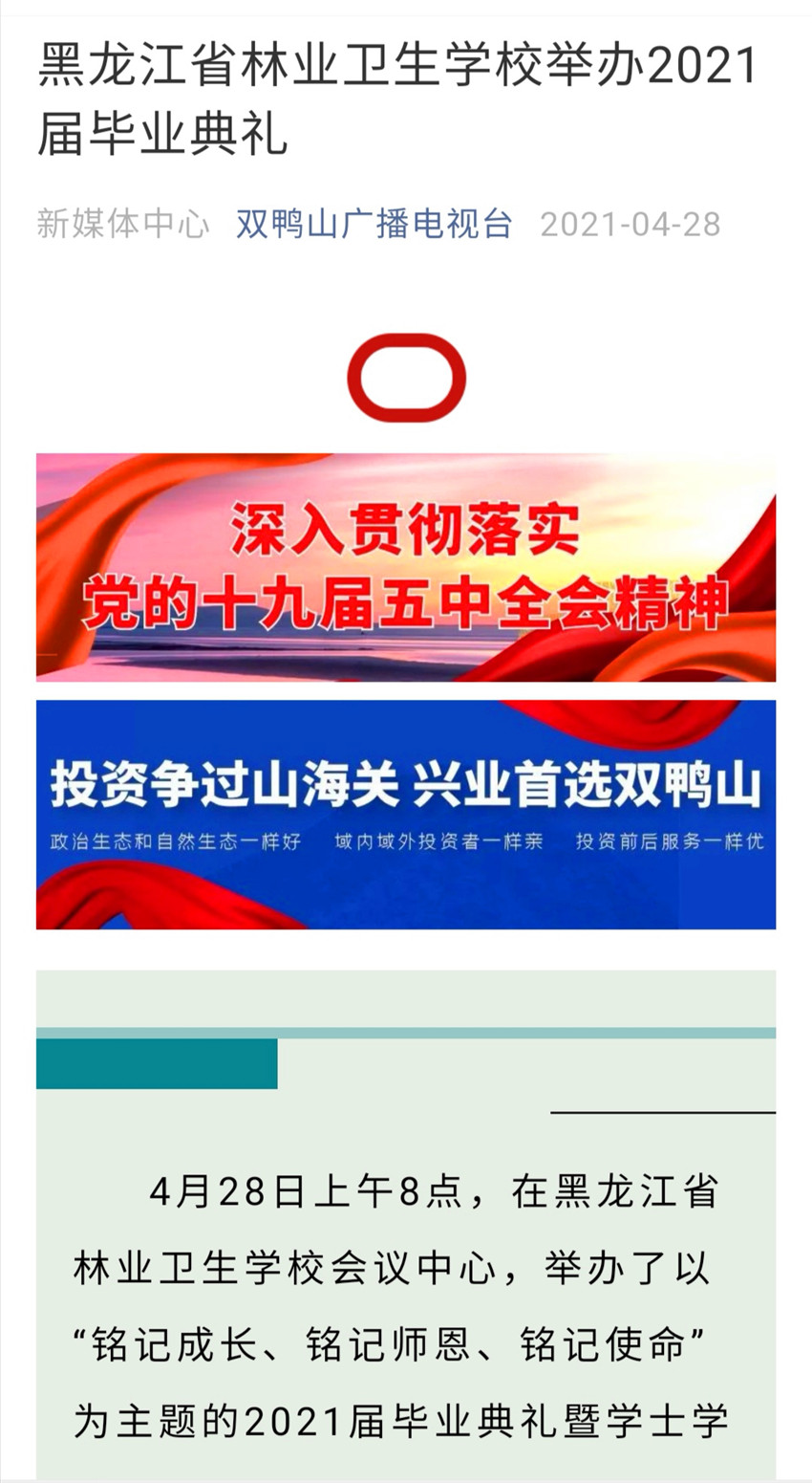 【雙鴨山廣播電視臺(tái)】黑龍江省林業(yè)衛(wèi)生學(xué)校舉辦2021屆畢業(yè)典禮 |