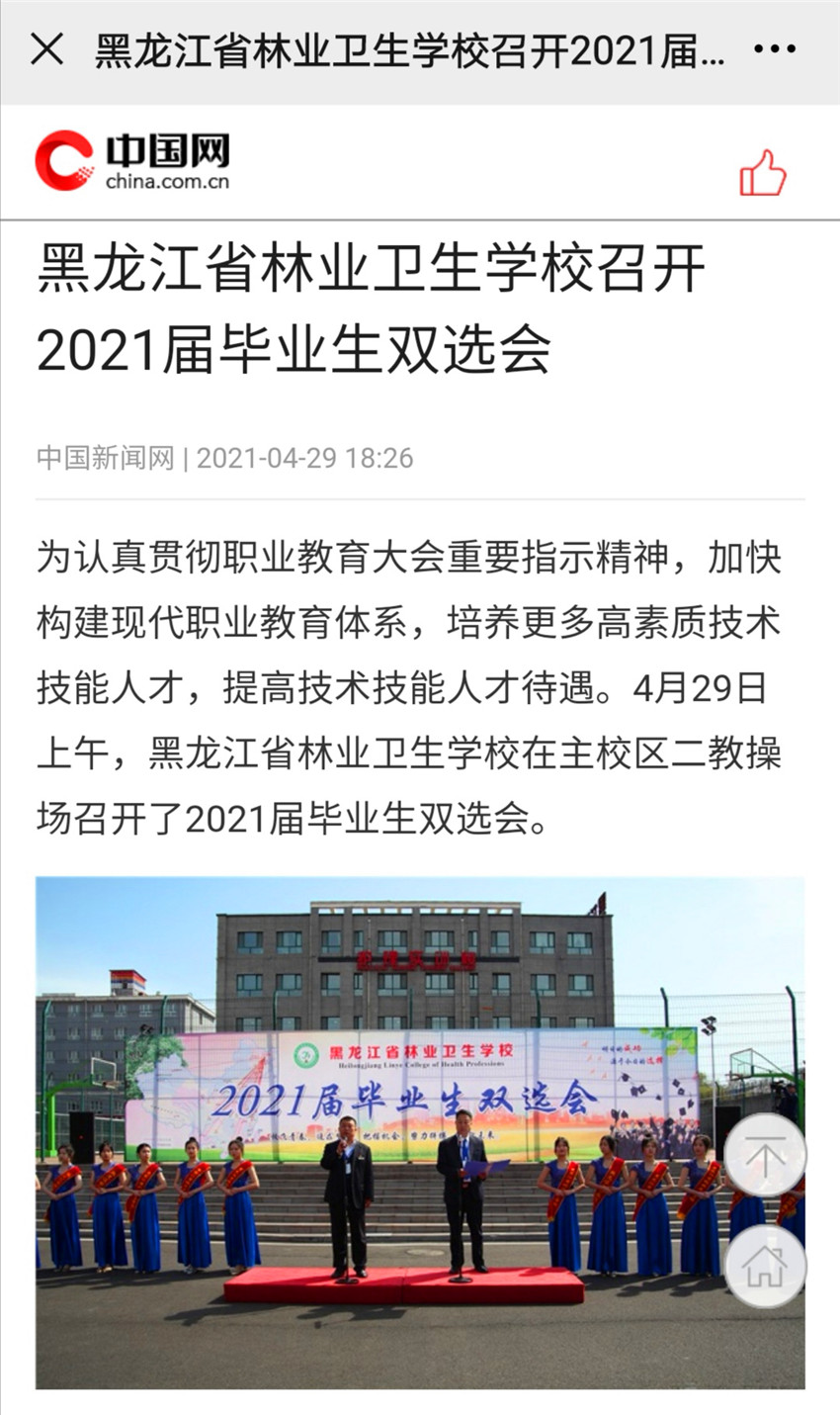【中國(guó)網(wǎng)】黑龍江省林業(yè)衛(wèi)生學(xué)校召開2021屆畢業(yè)生雙選會(huì) |