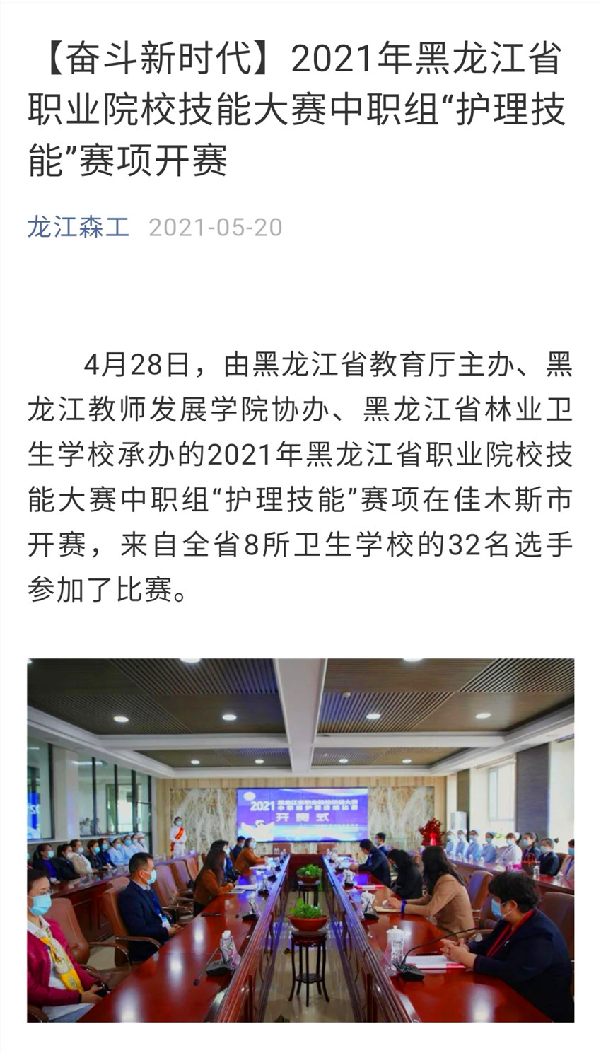 【龍江森工】【奮斗新時(shí)代】2021年黑龍江省職業(yè)院校技能大賽中職組“護(hù)理技能”賽項(xiàng)開賽 |