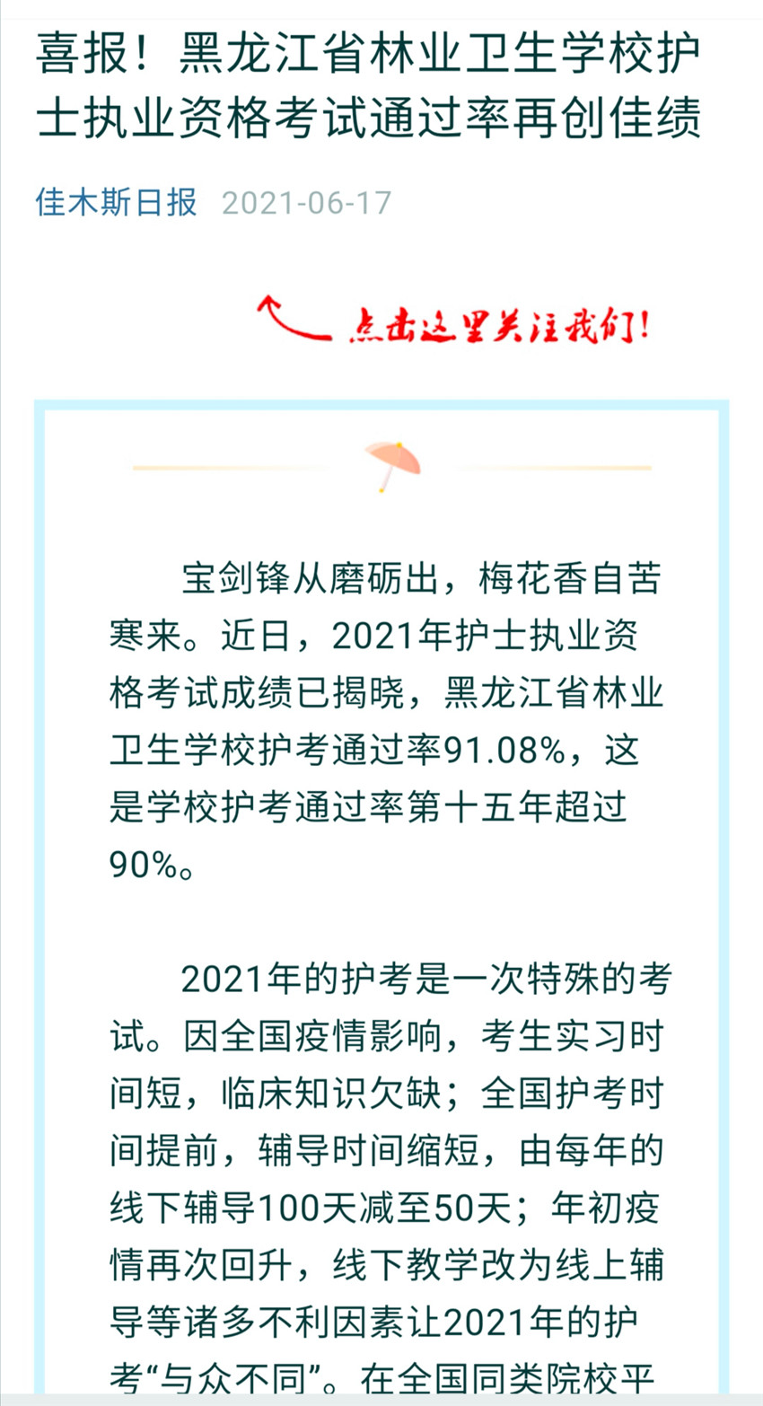 【佳木斯日報】喜報!黑龍江省林業(yè)衛(wèi)生學(xué)校護(hù)士執(zhí)業(yè)資格考試通過率再創(chuàng)佳績 |