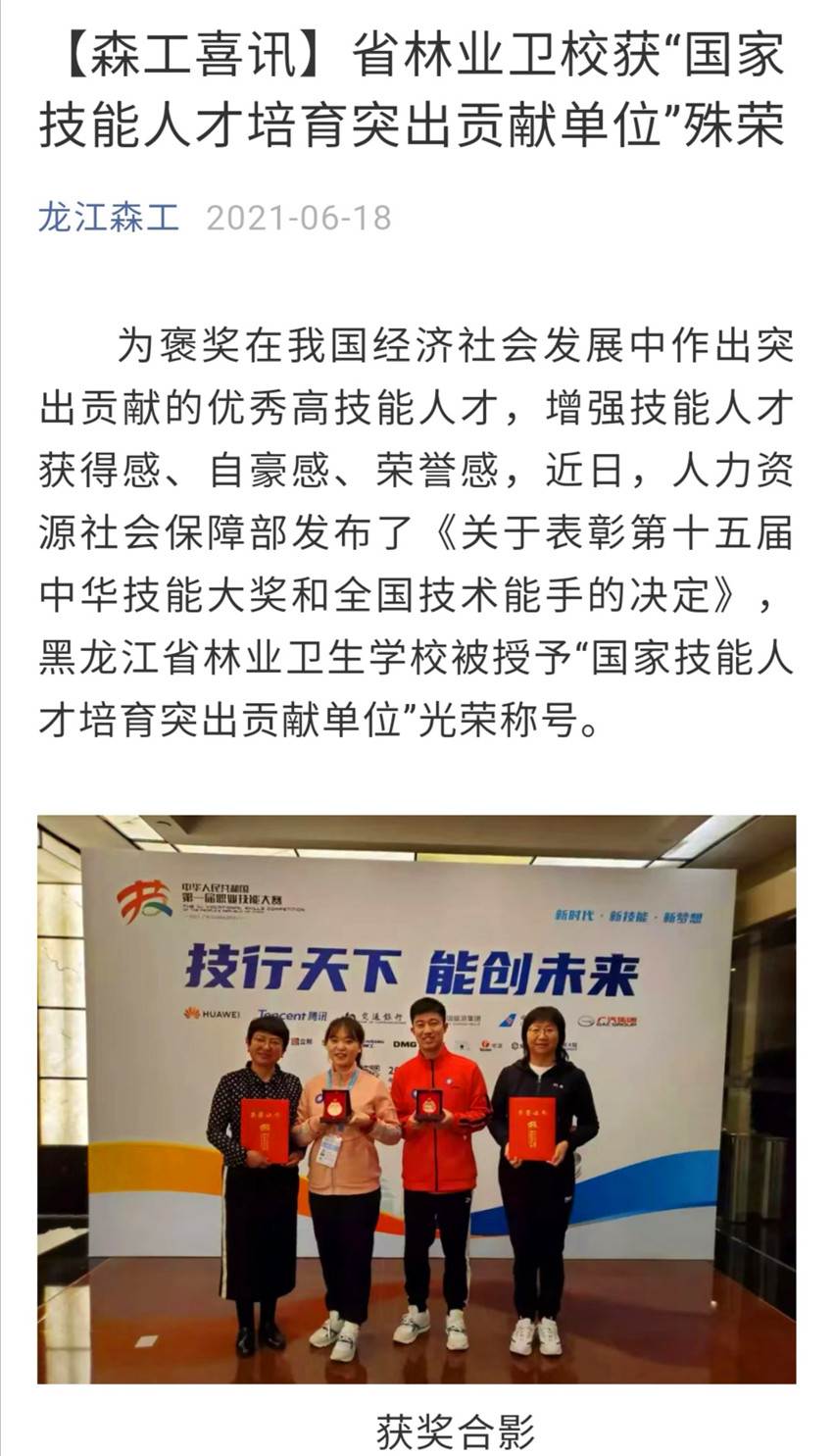 【龍江森工】【森工喜訊】省林業(yè)衛(wèi)校獲“國家技能人才培育突出貢獻單位”殊榮 |