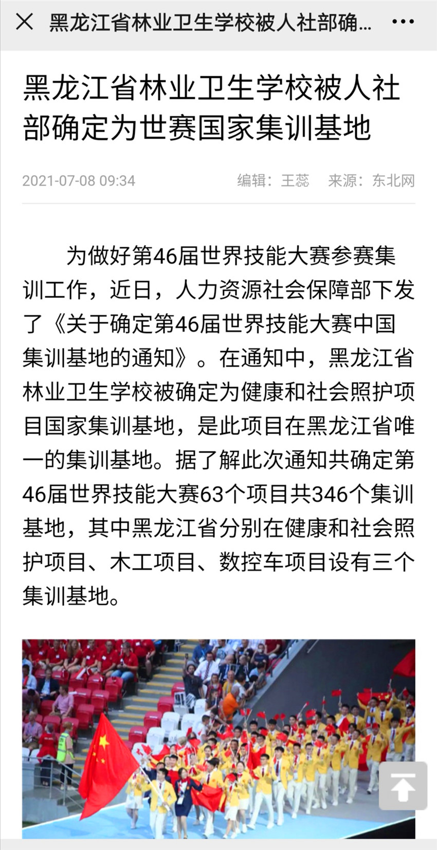 【東北網(wǎng)】黑龍江省林業(yè)衛(wèi)生學(xué)校被人社部確定為世賽國家集訓(xùn)基地 |