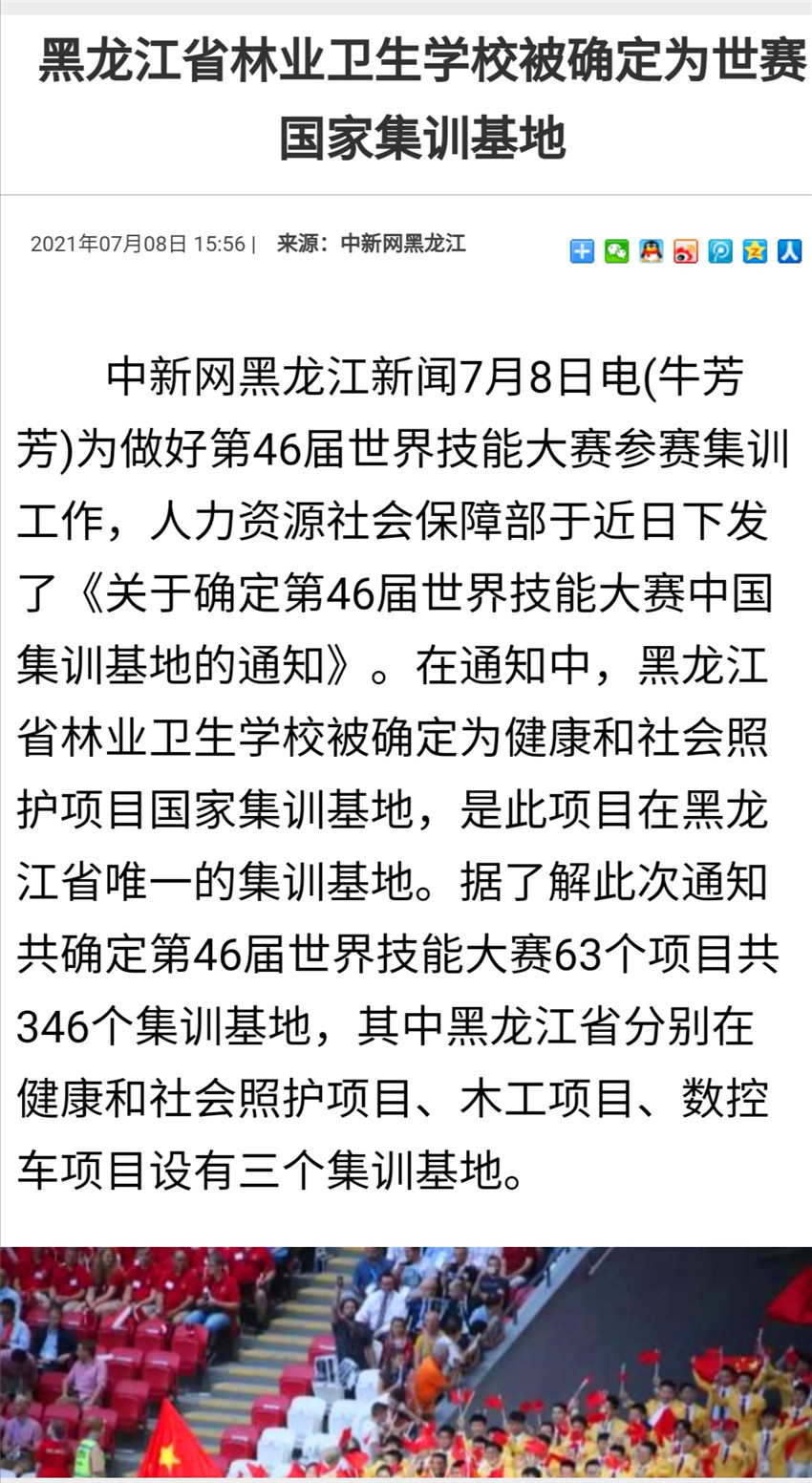 【中新網(wǎng)】黑龍江省林業(yè)衛(wèi)生學(xué)校被確定為世賽國家集訓(xùn)基地 |