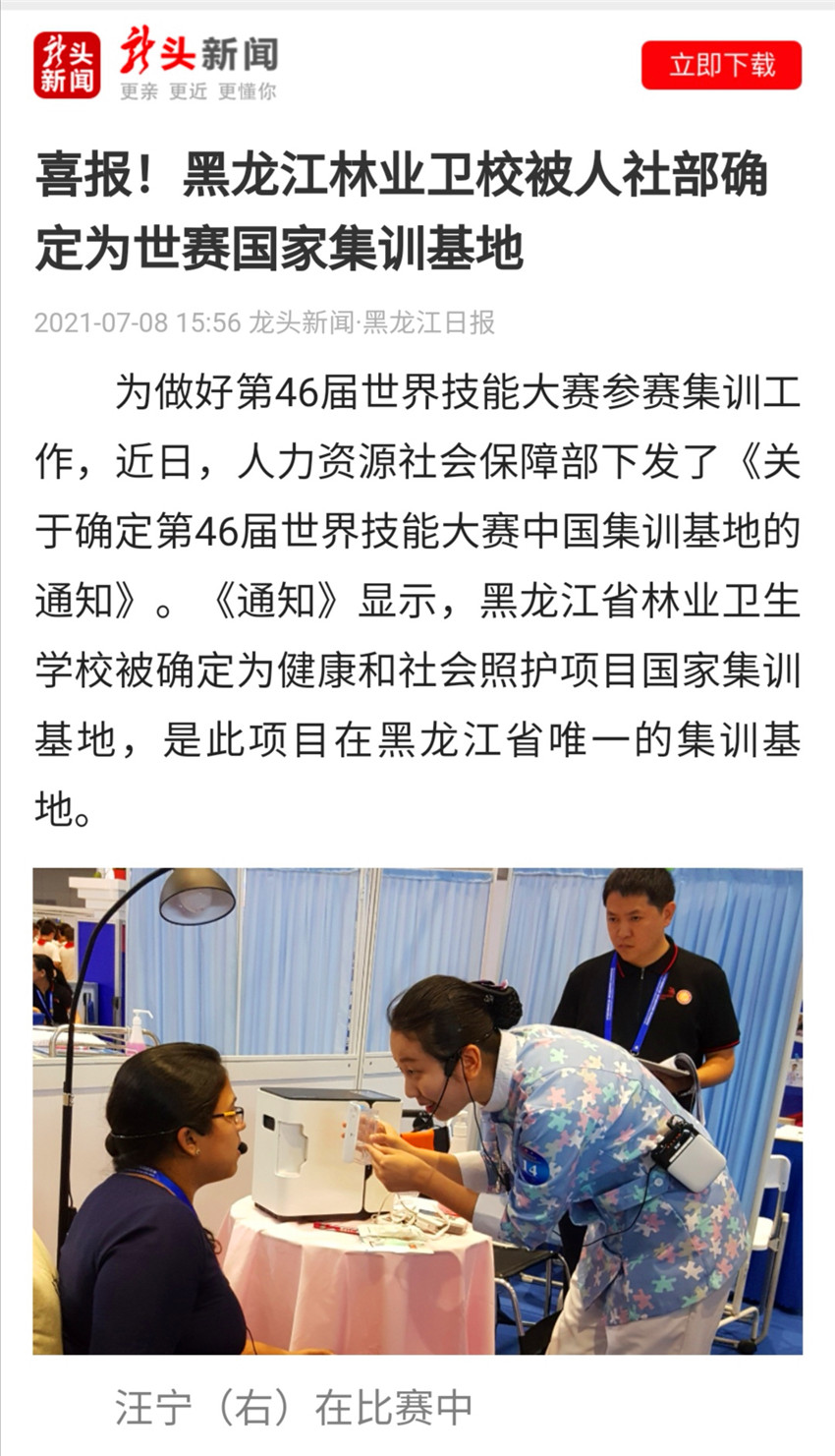 【龍頭新聞】喜報(bào)!黑龍江林業(yè)衛(wèi)校被人社部確定為世賽國家集訓(xùn)基地 |