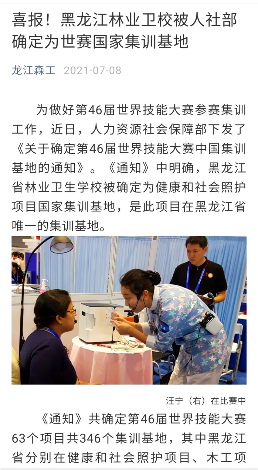 【龍江森工】喜報!黑龍江林業(yè)衛(wèi)校被人社部確定為世賽國家集訓基地 |