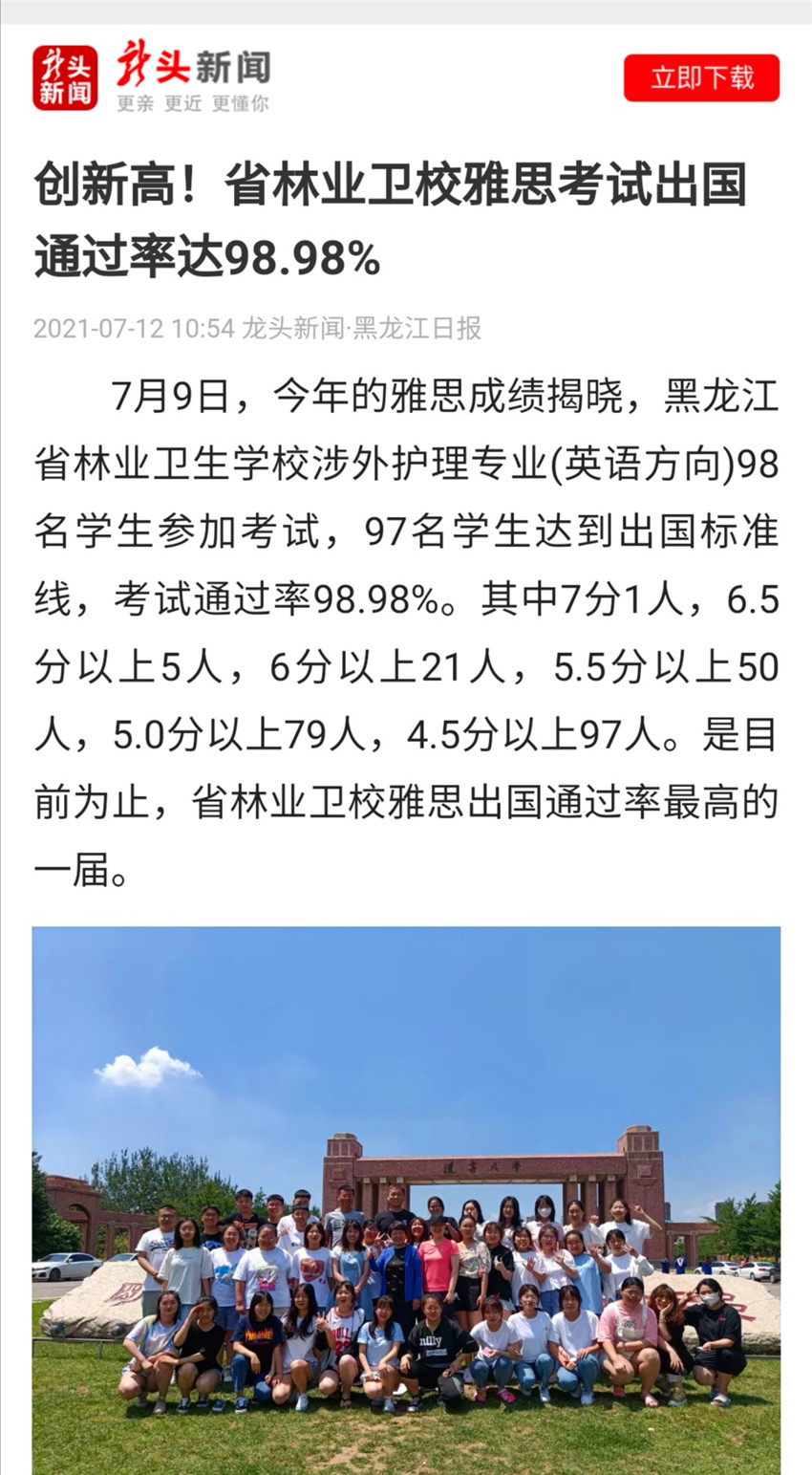 【龍頭新聞】創(chuàng)新高!省林業(yè)衛(wèi)校雅思考試出國通過率達(dá)98.98% |