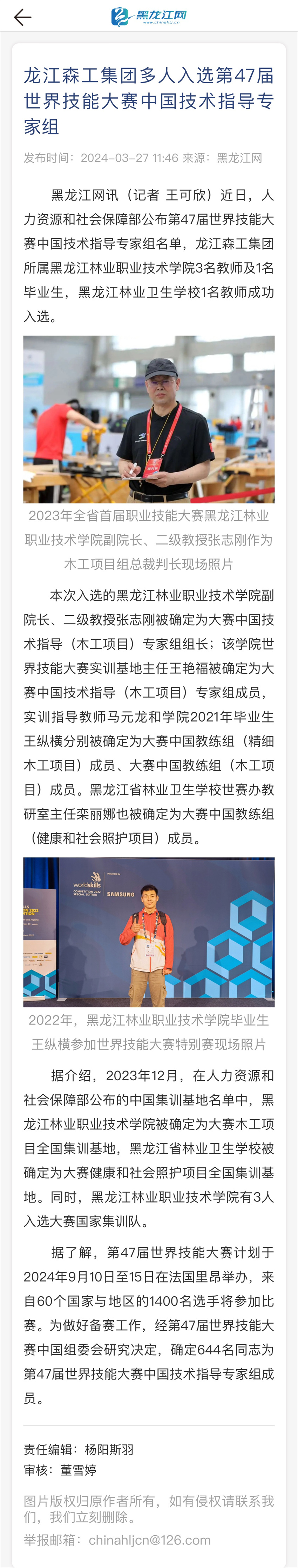 【黑龍江網(wǎng)】龍江森工集團(tuán)多人入選第47屆世界技能大賽中國技術(shù)指導(dǎo)專家組