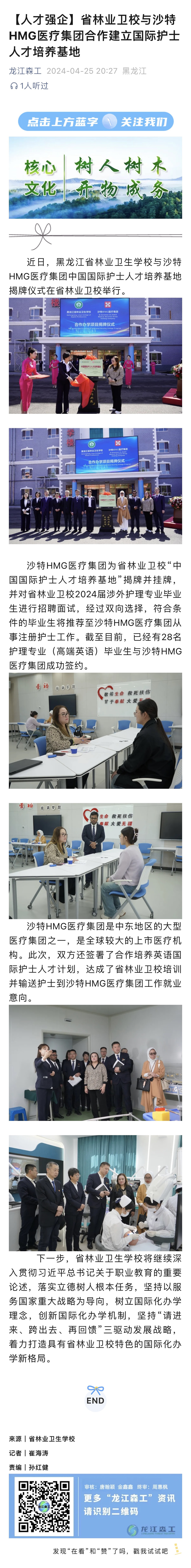 【龍江森工】【人才強(qiáng)企】省林業(yè)衛(wèi)校與沙特HMG醫(yī)療集團(tuán)合作建立國(guó)際護(hù)士人才培養(yǎng)基地