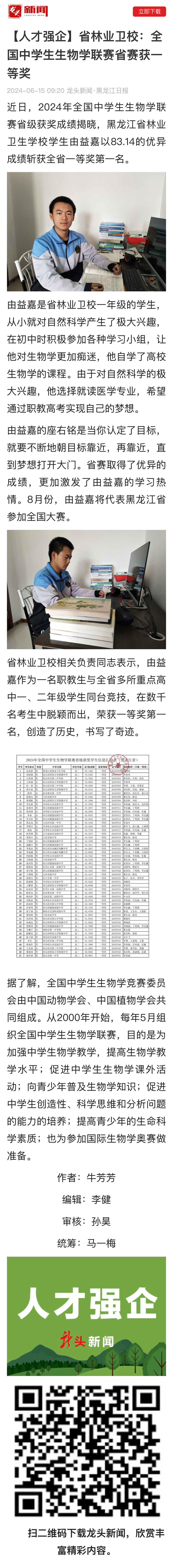 【龍頭新聞】【人才強企】省林業(yè)衛(wèi)校:全國中學(xué)生生物學(xué)聯(lián)賽省賽獲一等獎
