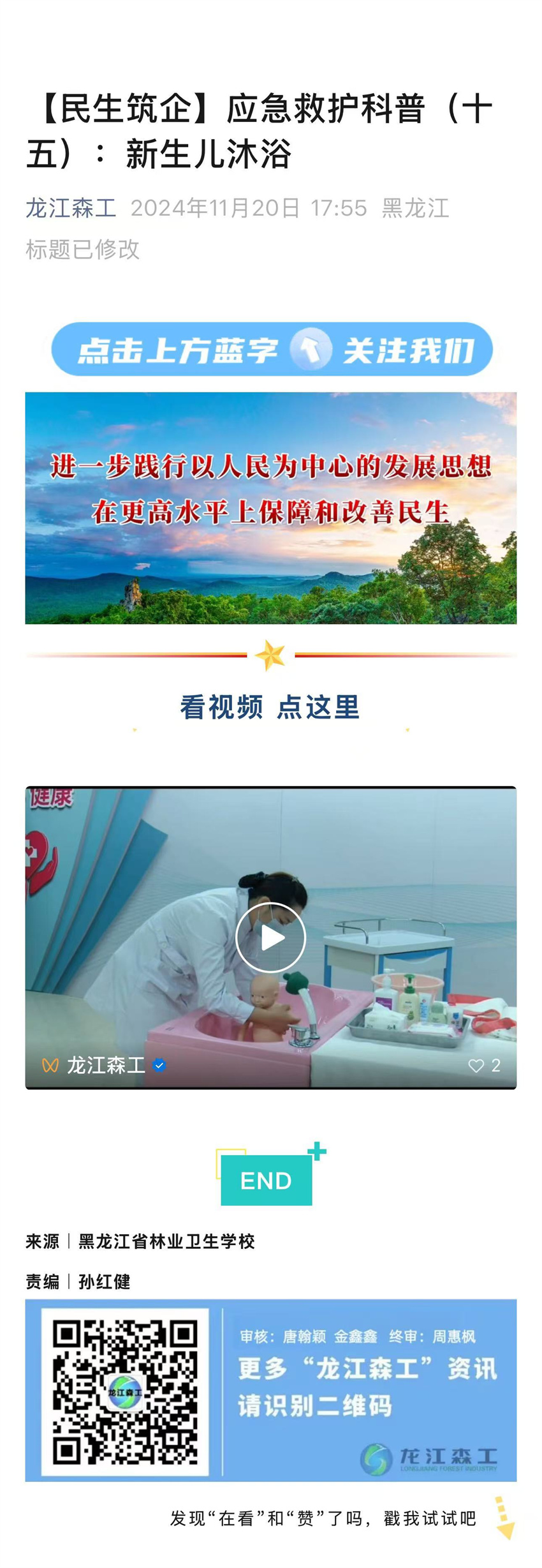 【龍江森工】【民生筑企】應(yīng)急救護(hù)科普(十五):新生兒沐浴