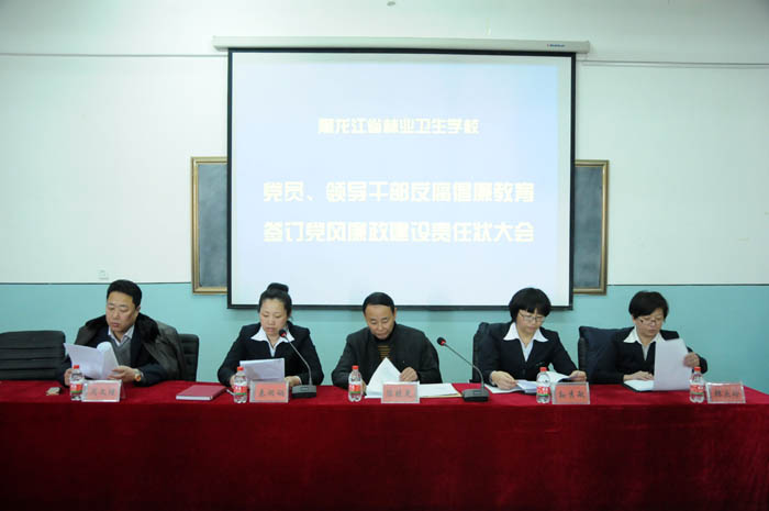 2月22日下午,在我校階梯教室召開黨員、領(lǐng)導(dǎo)干部反腐倡廉教育、簽訂黨風(fēng)廉政建設(shè)責(zé)任狀大會,黨委書記陳曉光、副校長秦羽翎、副校長孫秀敏、副校長周文理、副校長郎慶玲、全體黨員、中層領(lǐng)導(dǎo)干部參加了大會。大會由副校長秦羽翎主持。